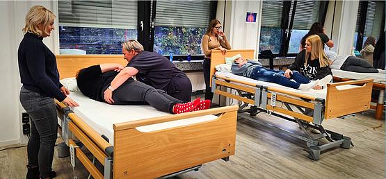 Altenpflegehelferinnen und -helfer betreuen gesunde und pflegebedürftige ältere Menschen. Für den Beruf braucht man mindestens den Hauptschulabschluss. Ein spezielles und kostenloses Sprachtraining hilft den Azubis beim Lernen der Fachsprache und bereitet sie gut auf die Prüfung vor. Auch wer älter als 30 Jahre ist, ist als Azubi an der Akademie willkommen: „Wir haben Auszubildende mit 40 oder 50 Jahren“, sagte Schulleiter Ingo Planitz. „Sie sind alle sehr gut. Lebenserfahrung ist in diesem Beruf sehr hilfreich."