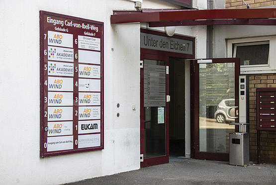 Die Akademie befindet sich im modernen Büro- und Medienpark „Unter den Eichen 7“ in Stadtrandlage im grünen nördlichen Bereich von Wiesbaden. Auf dem parkähnlichen Areal laden Fußwege und Verweilplätze zum Entspannen in den Mittagspausen ein. Ein Bistro und eine Postfiliale sind im Haus vorhanden.
